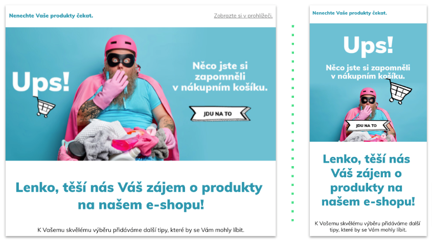 Zároveň je ale třeba některé části upravit dle zařízení, na kterém si odběratel e-mail otevře. Zkrátka – aby vždy všechny části byly dobře čitelné, nebo nezabíraly zbytečně moc místa a váš e-mail se nestal nekonečným scrollem.