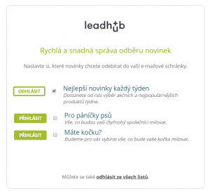 Stejně tak snadno se mohou i z odběrů odhlašovat. Zde ale můžete využít příležitosti a přesměrovat příjemce na odhlašovací stránku, kde si místo úplného odhlášení pouze upraví preference.