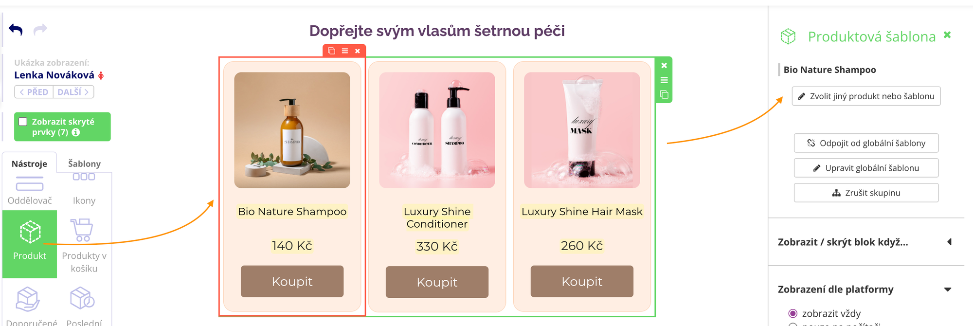 Aby produkty v e-mailu vynikly, můžete si jejich vzhled snadno přizpůsobit.