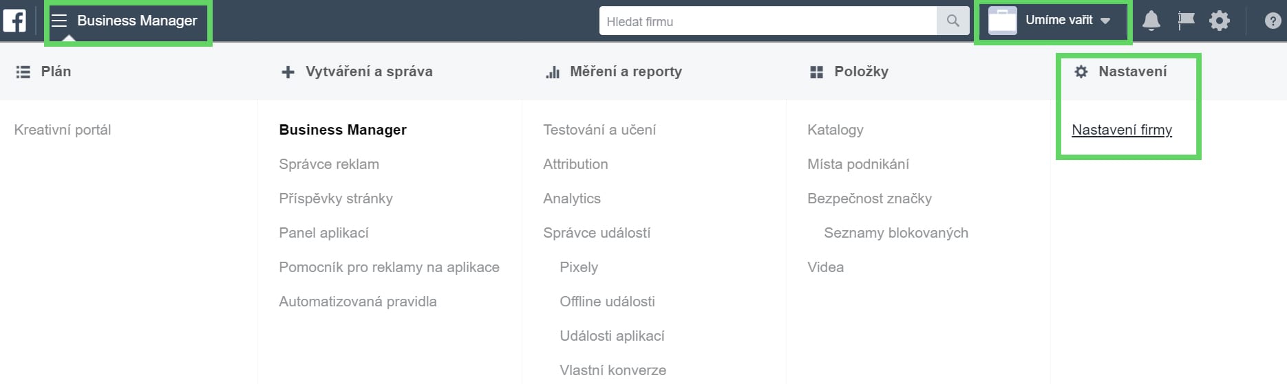 2. Přidání firemní stránky do Business Manageru