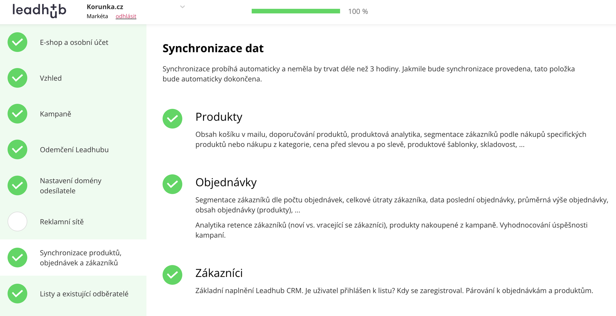 1. Shoptet + Leadhub = Integrace a synchronizace dat jedním kliknutí