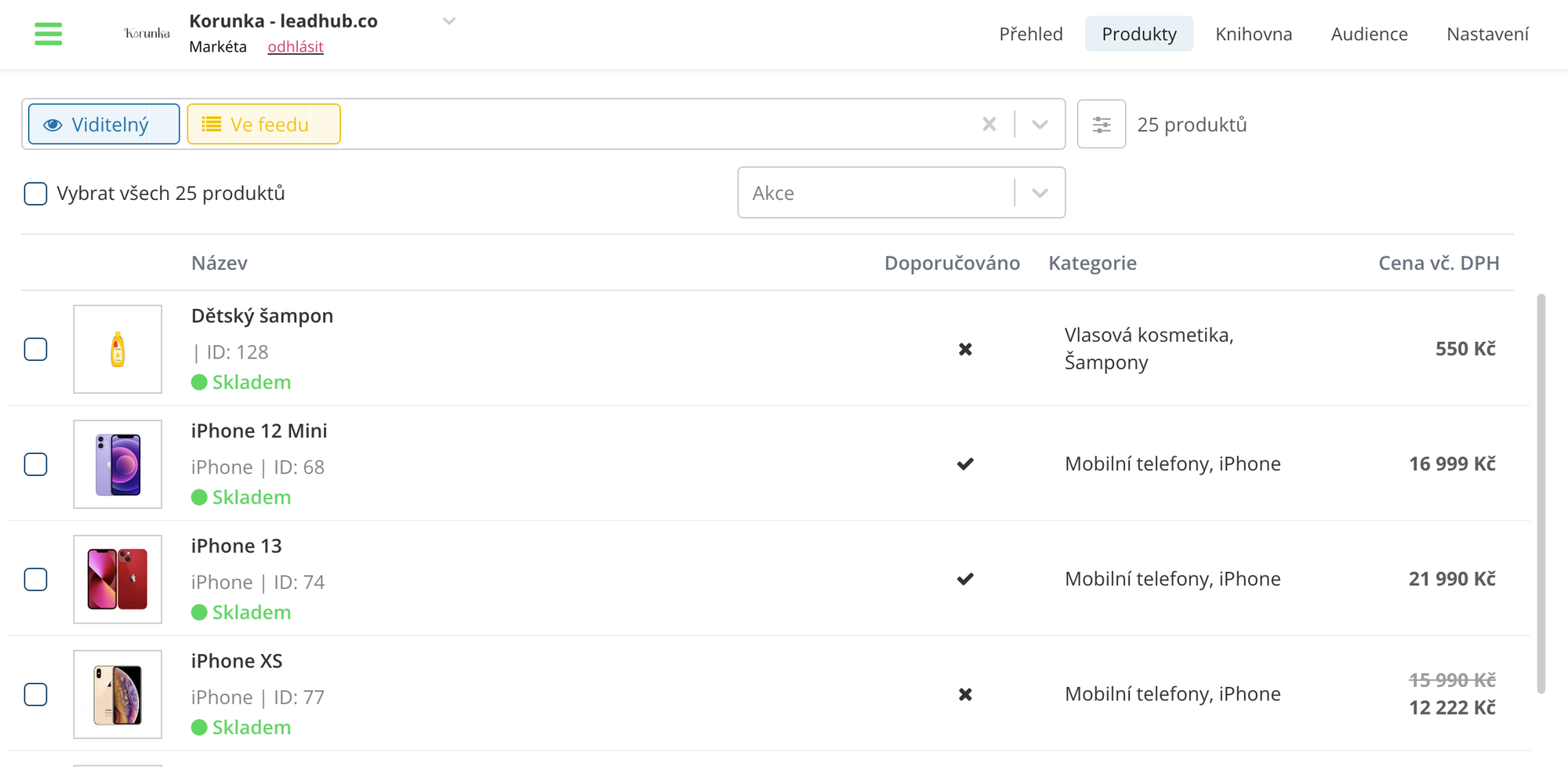Produkty do e-mailů zobrazíte pomocí produktových šablon a můžete definovat, které produkty se budou zobrazovat v doporučování.