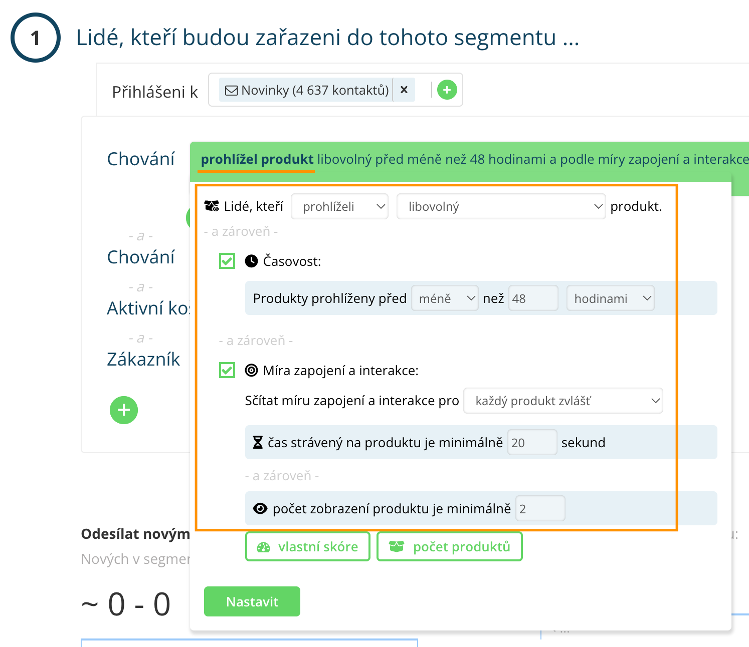 - které produkty (libovolné nebo konkrétní) a kategorie si odběratel prohlížel