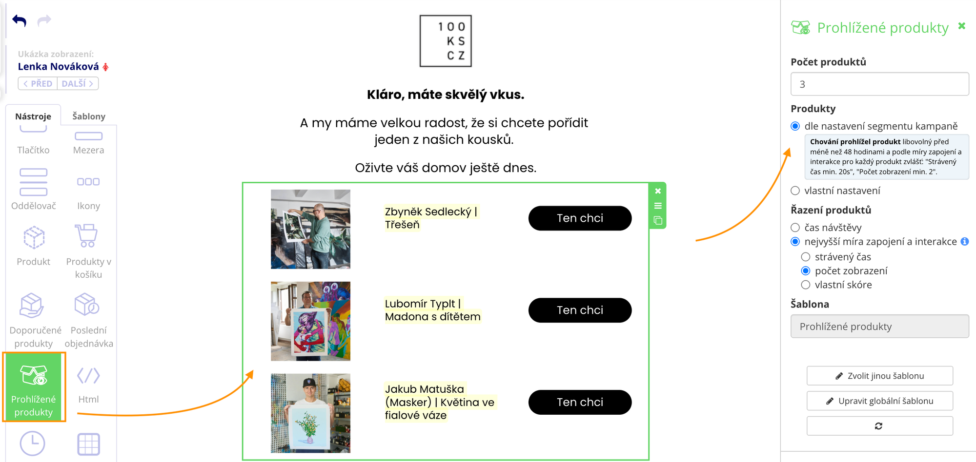 Využijte novou funkci Prohlížené produkty a kategorie – vygenerujte si automatizované kampaně, které reagují na chování návštěvníků a připomenou jim konkrétní produkty přímo v e-mailu. Spusťte je ihned a zvyšte konverze.