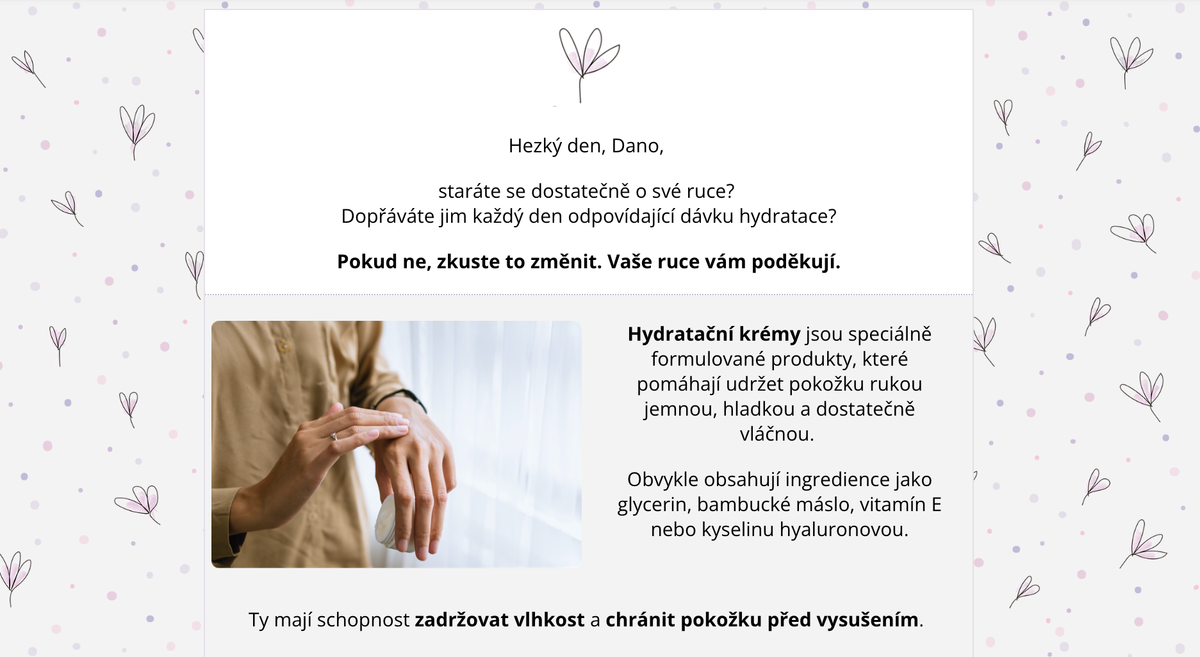 Ukázka automatického e-mailu, který připomíná prohlížené produkty