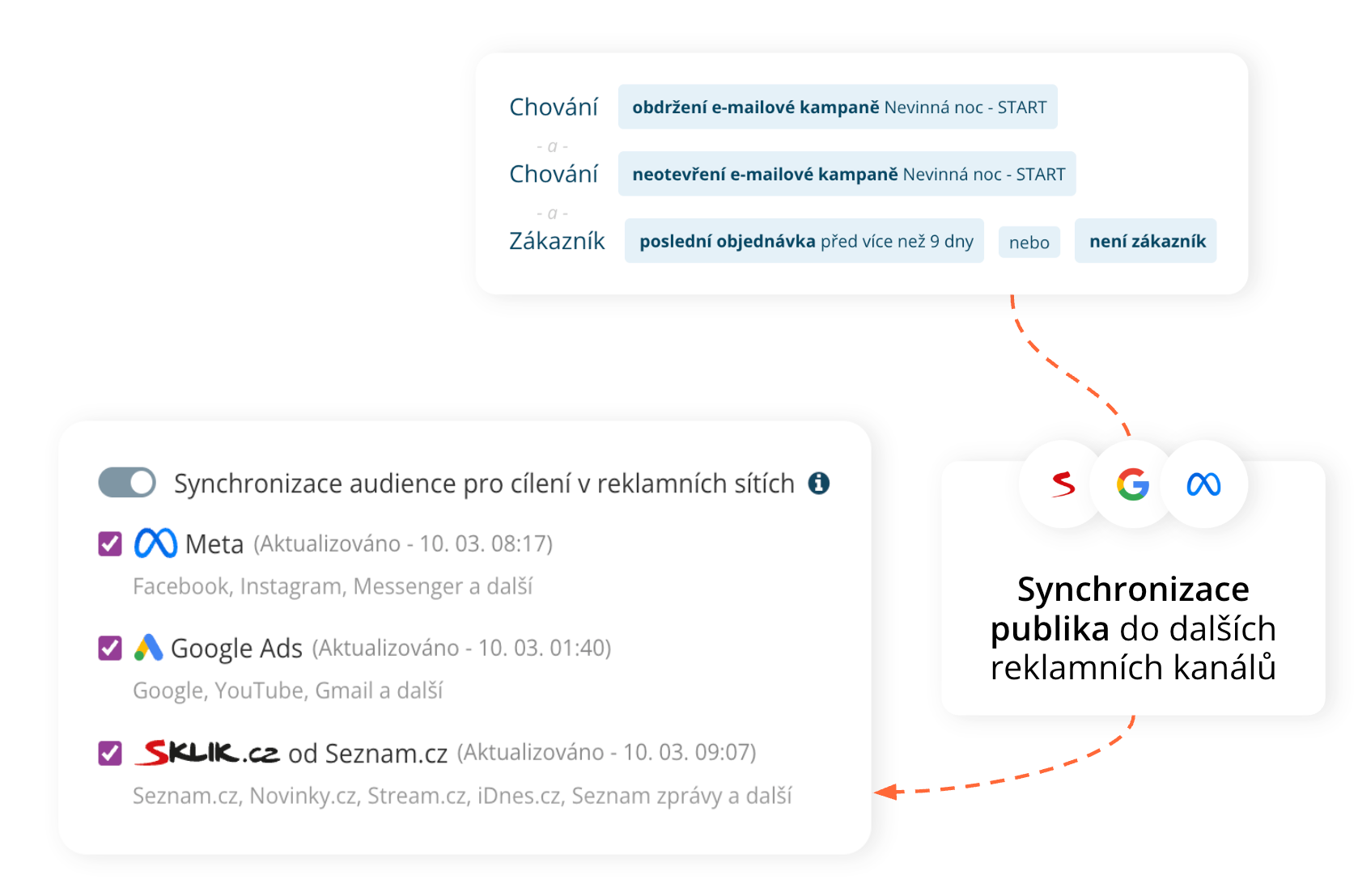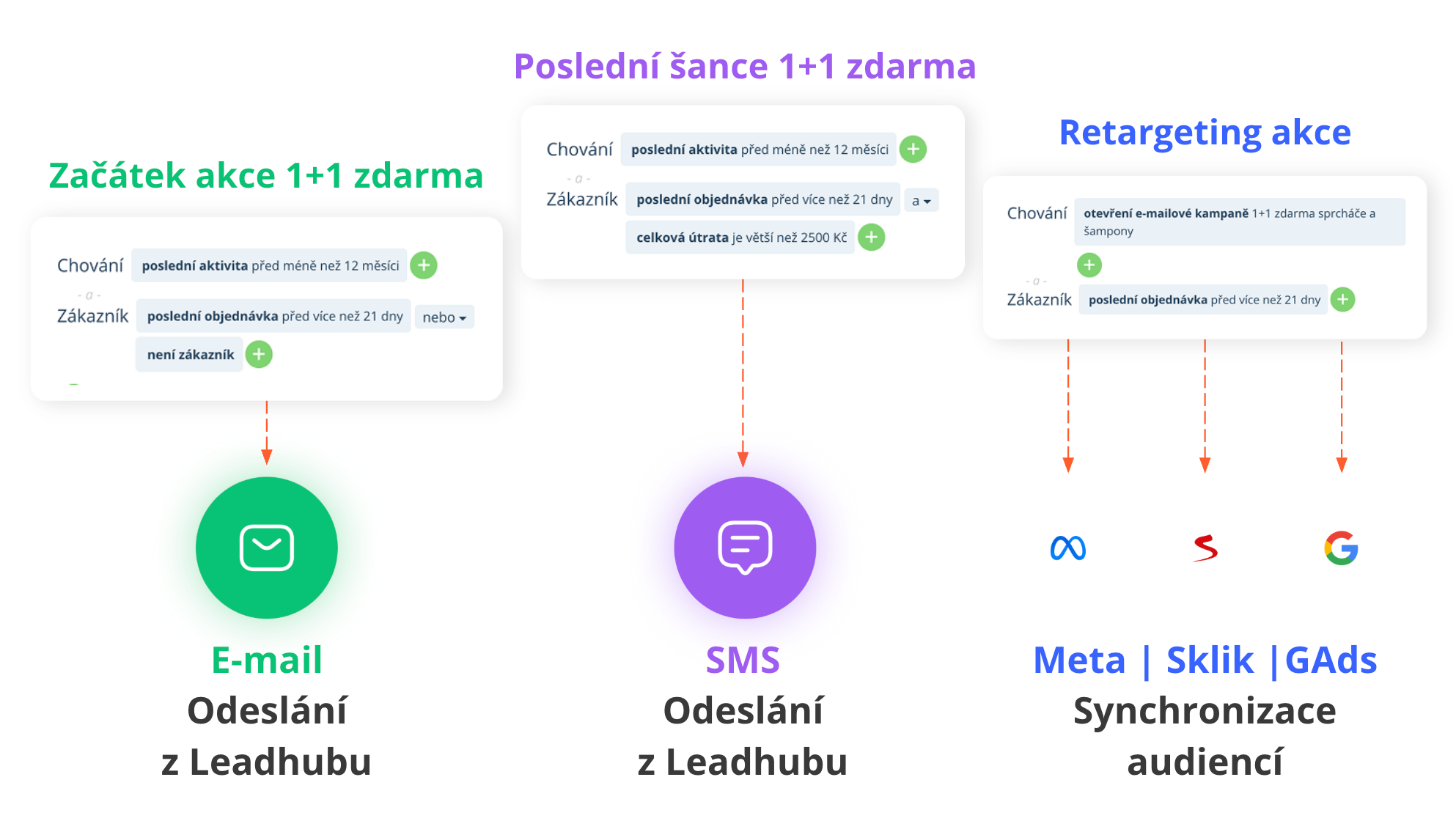 Nejde o to posílat více zpráv. Jde o to řídit komunikaci podle chování zákazníka a využívat více kanálů, například e-mail, SMS nebo další reklamní platformy (Google Ads, Sklik nebo Meta Ads).