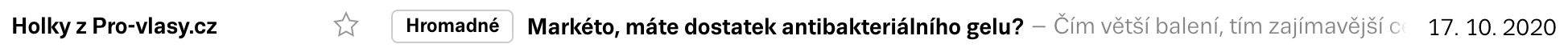 Předmět rozhodne, zda příjemce e-mail vůbec otevře. A nejenom ten. Společně se jménem odesílatele a preheaderem (=náhledový text, který se ve schránce zobrazuje za předmětem) se podílí na prvotním úspěchu vašeho newsletteru. Pokud preheader nenastavíte, poštovní klienti do něj zobrazí první text, který v e-mailu najdou, což nemusí být vždy vhodné.