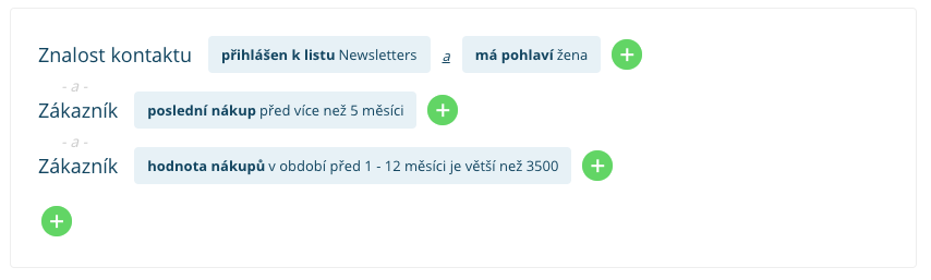 Použitím segmentačních pravidel, které e-mailingový nástroj nabízí, vytvoříte skupiny (tzv. segmenty) na základě jejich znalosti nebo chování.